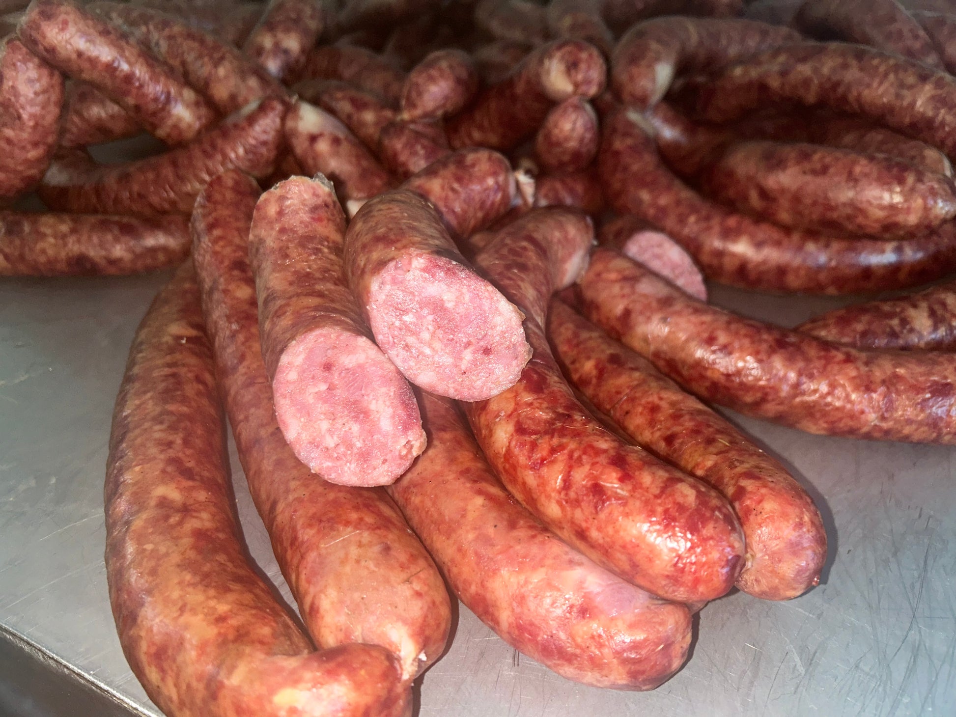 Polutrajna dimljena kobasica od mangulice za przenje i kuvanje.